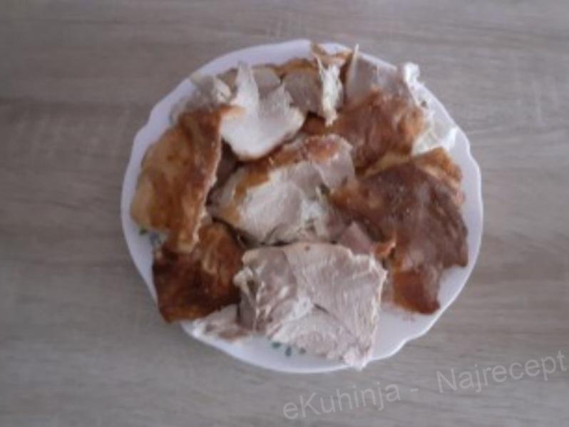 5. Tokom pečenja prelivati sokom koje je meso pustilo. Okrenuti da se zapeče i druga strana (nakon sat vremena pečenja).