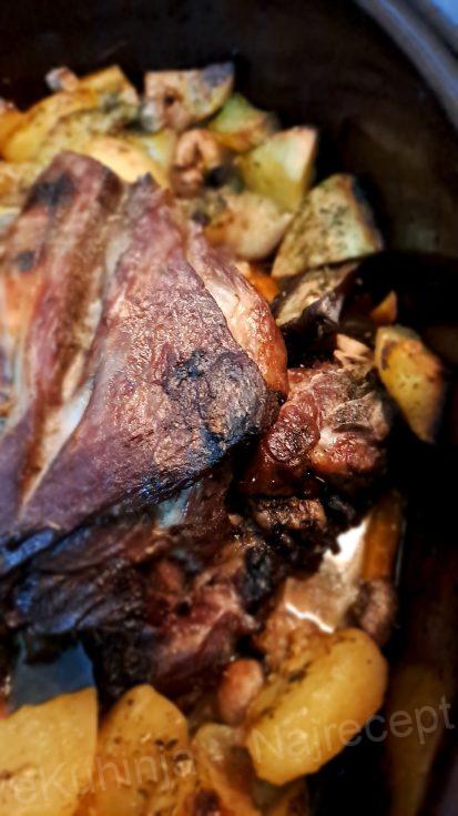 3. Poklopiti pekač i staviti da se peče na 200 stepeni oko 90 minuta. Skinuti poklopac, pa peći 15 minuta, a zatim okrenuti meso i peći još 15 minuta, da se meso zapeče sa obe strane.