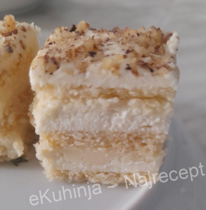 Filovati sve tri korice, odozgo posuti mlevene orahe i blago izravnati nožem.