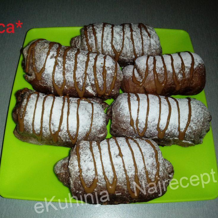 U mlakoj vodi rastopiti kvasac sa 1 kašikom šećera i ostaviti da naraste. U vanglici pomešati brašo, so, ostatak šećera i slatki kakao. Dodati jaje, mlako mleko i narasli kvasac. I zamesiti glatko testo. Ostaviti testo da naraste oko 30 minuta.