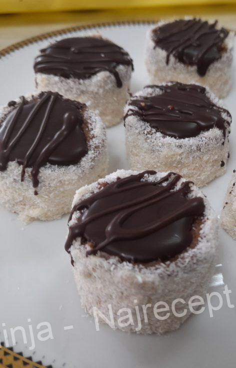 Kad se kore ohlade ,čašicom vadimo kružiće duž cele kore i svetle i tamne. Na svetle kružiće, špricom za ukrašavanje stavljamo po malo fila, poklopimo tamnim, i ostavimo malo da se stegnu. Filom premažemo svaki kspojeni kolačić okolo i uvaljamo u kokos.