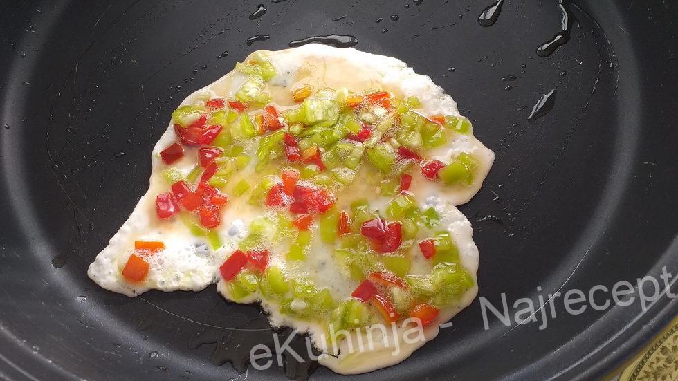 6. zagrejati namašćen nelepljivi tiganj na 3 (ima do 5 jačine), znači ne prejako