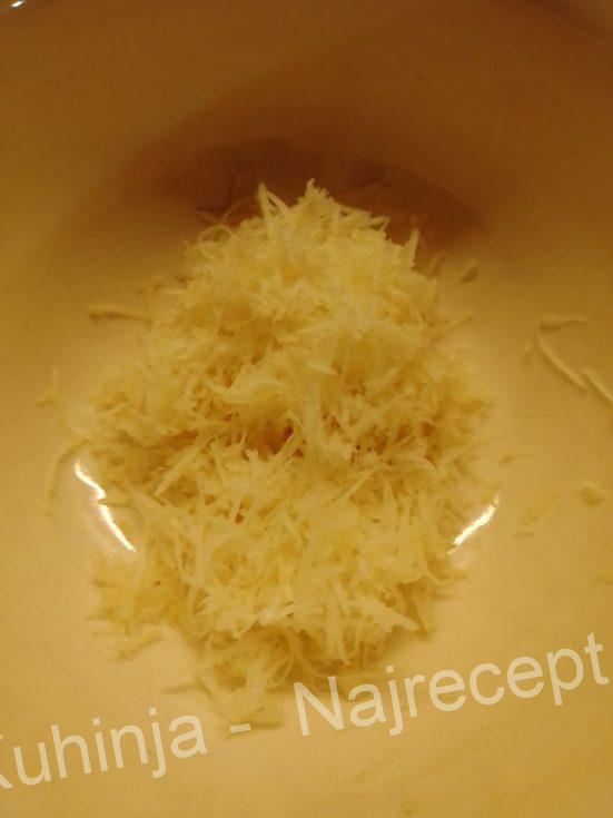 Oko 200 gr. oljuštenog korena celera sitno narendajte i malo posolite.