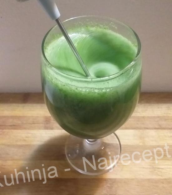 – ubacimo u blender mlaku vodu, briket spanaćai komad krastavca