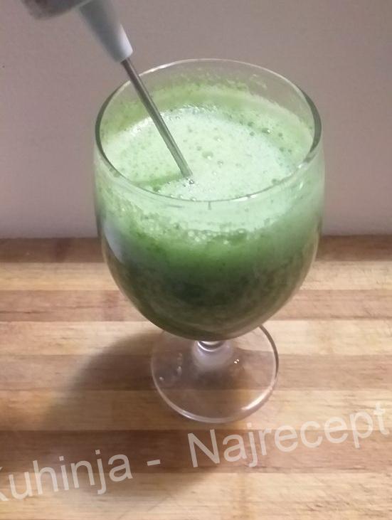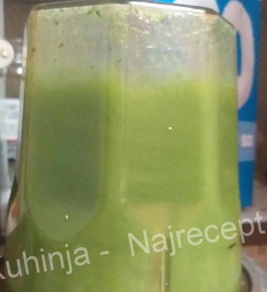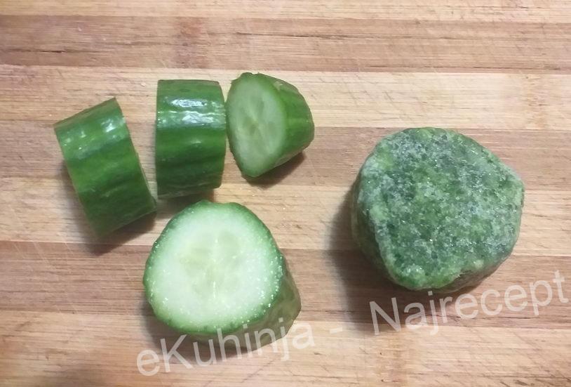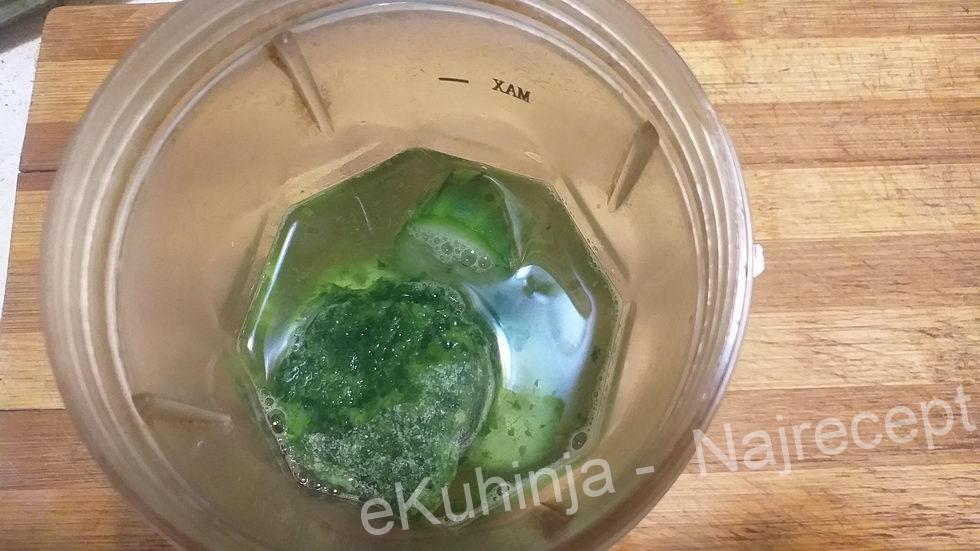 – ubacimo u blender mlaku vodu, briket spanaćai komad krastavca