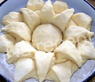 Sa oštrim nožem je iseći na osam delova, ostavljakući po 1 cm od kraja pogače. Svaki deo razlistati od sredine ka krajevima.