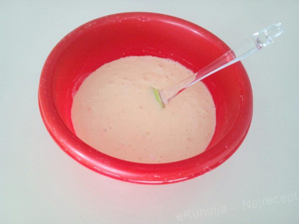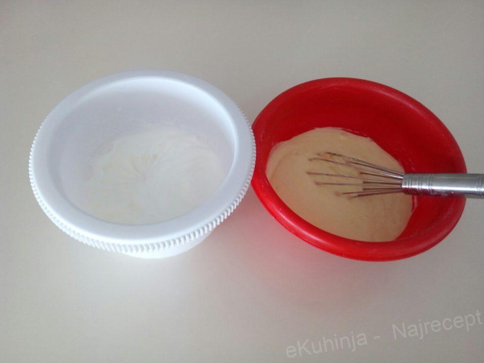 3. Postepeno dodavati brašno i sve sjediniti ručnom žicom za mućenje.