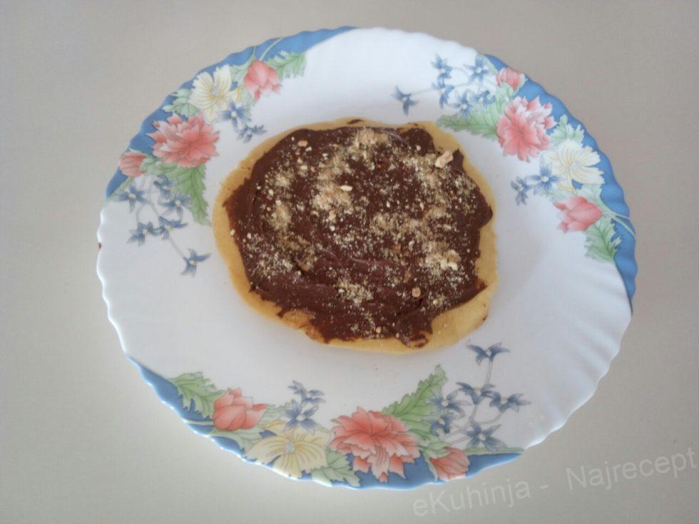 7. Jednu palačinku premazati nutelom, posuti mlevenom plazmom, te preklopiti drugom palačinkilom.
