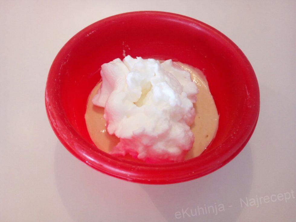 4. Mikserom umutiti śam od belanaca i dodati u umućenu smesu, pa lagano izmešati špatulom kako bi se svi sastojci sjedinili.