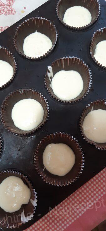 2. Pomešajte čokoladu izlomkanu na kockice sa maslacem isečenim na kockice i otopite uz povremeno mešanje na niskoj temperaturi. Kuhinjskom četkicom premažite otopljenom čokoladom unutrašnjost papirnih korpica za mafine i stavite u kalup za mafine da ne izgube oblik (navedena količina je za 24 korpice). Pripremljene korpice stavite u zamrzivač da se stegnu.