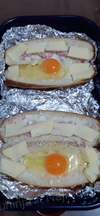 Pecite u zagrejanoj rerni na 180 stepeni 10 do 15 minuta u zavisnosti da li volite da jaje bude malo rovito ili lepo zapečeno.Kada je gotovo izvadite iz rerne, preklopite kiflu i poslužite uz jogurt.