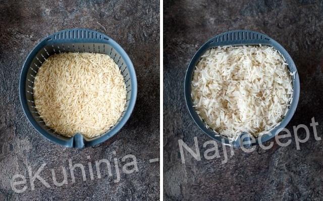 1. Pirinač oprati u dve vode i ostaviti da se kiša 30 minuta.