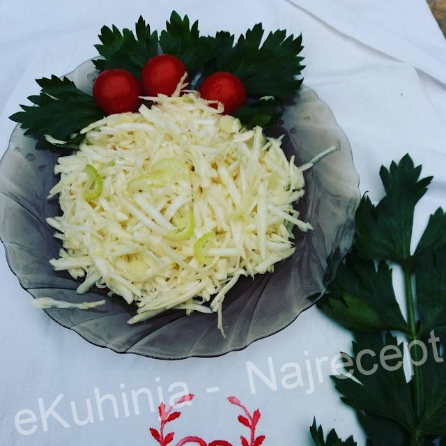 Celer izrendati, dodati sitno seckan beli luk, sok od limuna, ulje i so po ukusu.