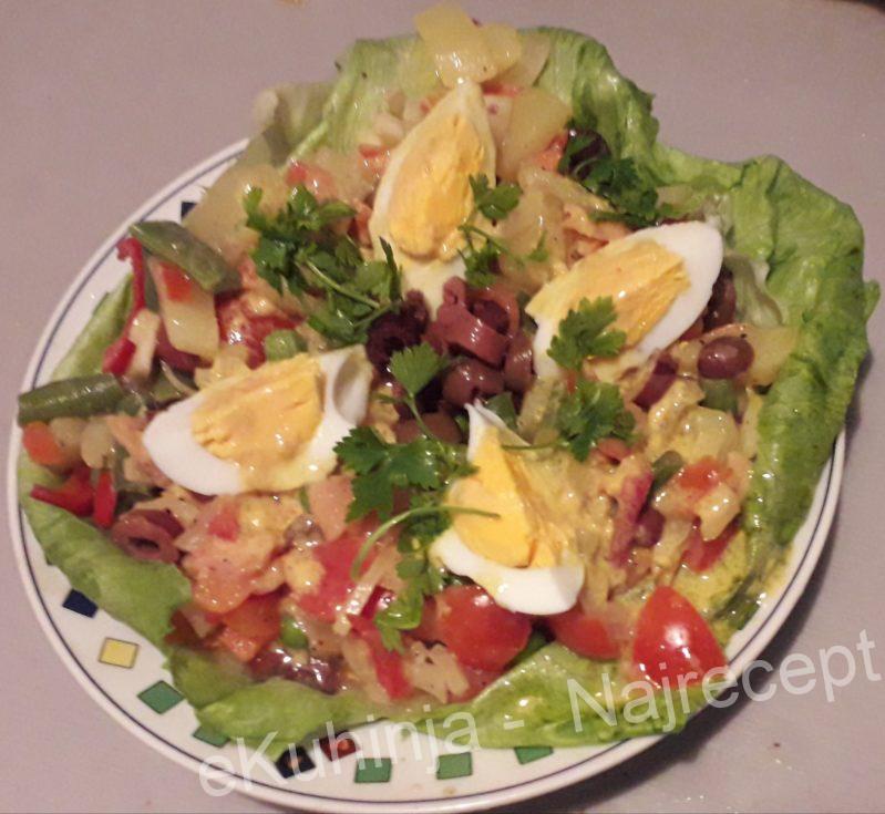 Ova salata ne mora da bude samo puka salata ili prilog. Ona je i vise od toga. Moze da bude i ceo obrok. Zdrav, ukusan, brz, jednostavan i to direktno iz vase kuhinje. Bez jaja, eto ideje za posnu ili vegetarijansku trpezu.