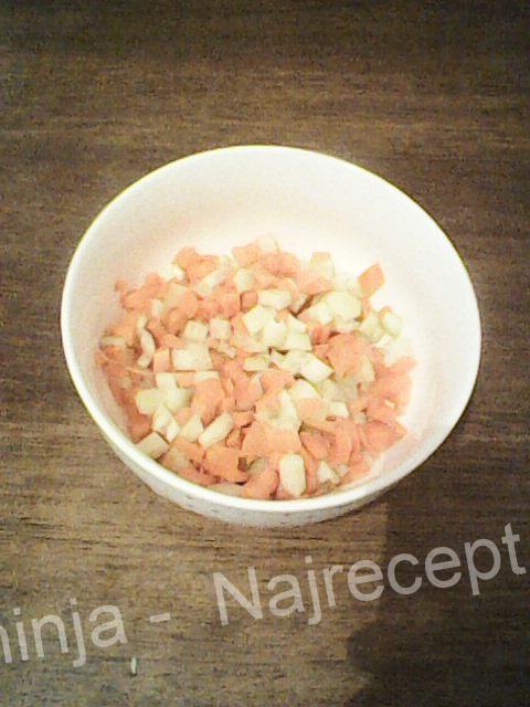 Krsatvac i šargarepu iseći na baš sitne kockice, izmešati, posoliti i ostaviti desetak minuta da odstoji.