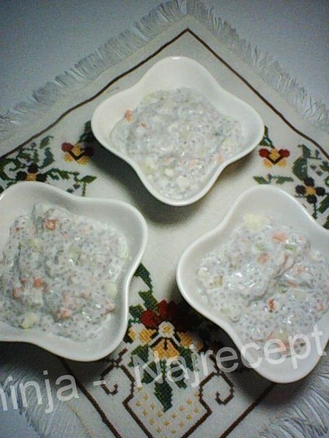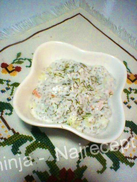 Pomešati iseckano posoljeno povrće sa jogurtom i čia semenkama i posuti sa vrlo malo sitno seckane mirođije.