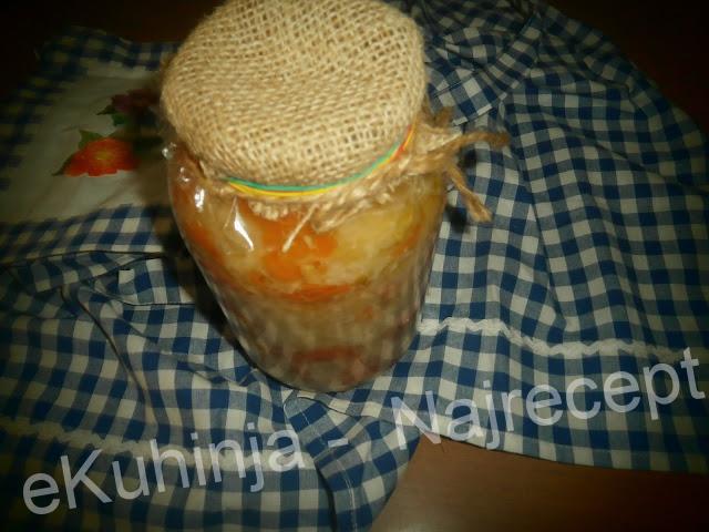 Povrće iseckati na željene oblike i staviti ga u dublju posudu. U veću šerpu staviti vodu, sirće, šećer, so, biber u zrnu i vinobran. Mešati, dok se šećer, so i vinobran ne istope. Sa pripremljenom mešavinom preliti povrće, pritisnuti većim poklopcem, pa ostaviti da odstoji 24 sata.Složiti povrće u tegle, dosuti tečnost (ako je potrebno), pritisnuti plastičnim pritiskivačem i zatvoriti