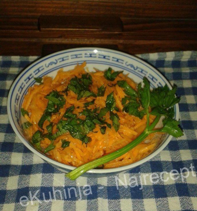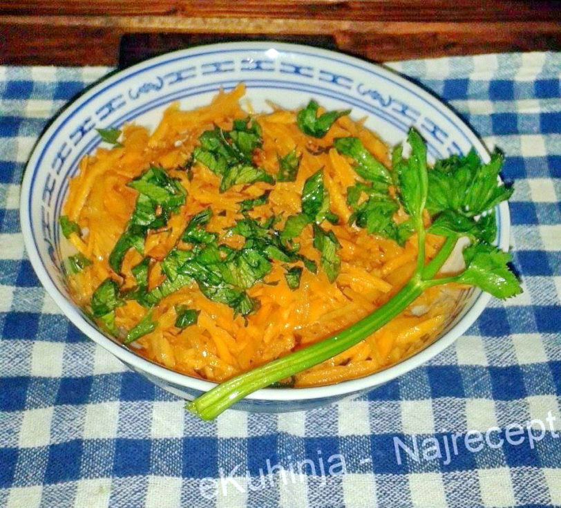 Sargarepu ocistite, operite i izrendajte. posolite dozvoljenom solju (himalajska ili morska!), zakiselite jabukovim sircetom, prelite uljem (hladno presovano nerafinisano jestivo biljno ulje od suncokreta) I pospite svezim seckanim persunovim listom.