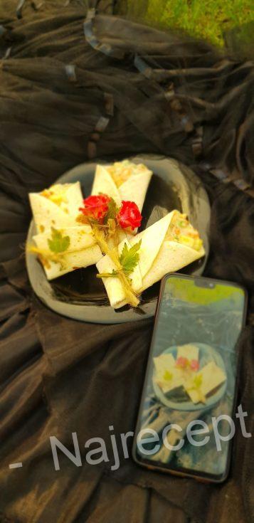 Tortilje smotati kao na slii uvezati kanapom ukrasiti i napuniti smesom , smesu za Rusku salatu obariti, prohladiti, dodati Dijamant majonez, puniti i to je to.