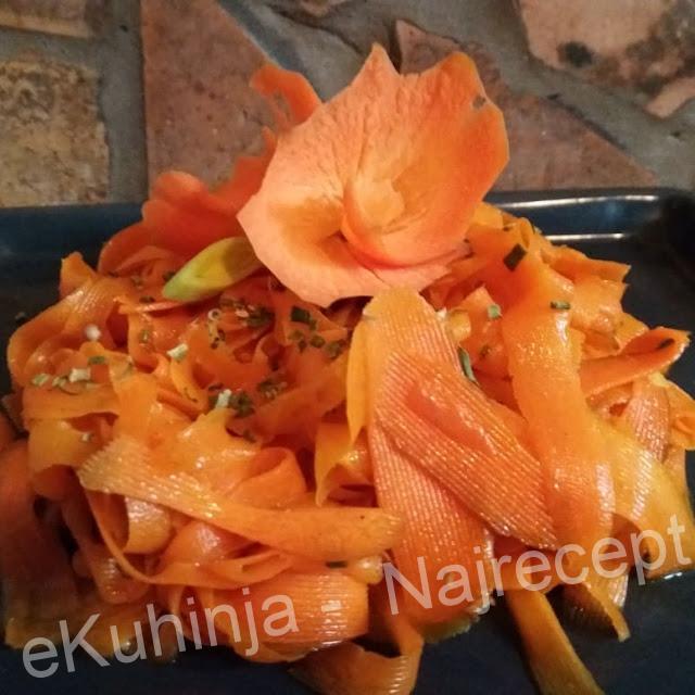 4. Uzmi 100 ml ulja (koje volis) i izdinstaj u njemu glavicu crnog luka, kad luk omekša izvadite ga, a vrelo ulje dodaj u šargarepu (BEZ LUKA).