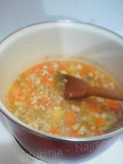 6. Pred kraj kuvanja po ukusu začiniti: so, biljni začin, beli luk, biber i mirođija.
