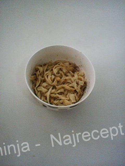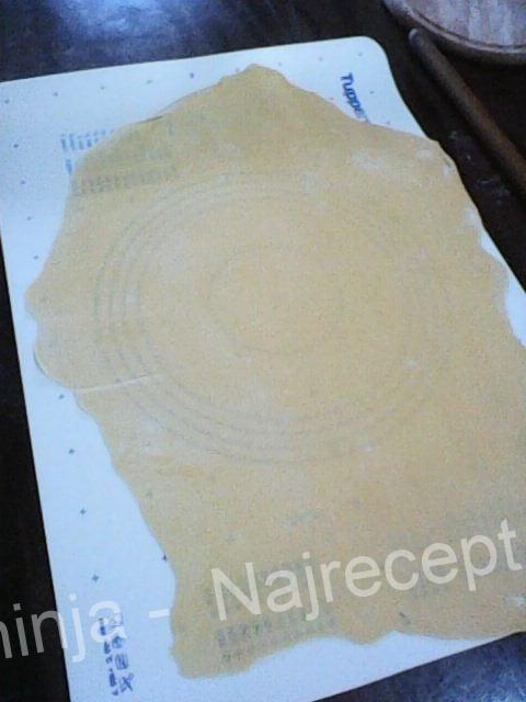 Ja sam spremala široke rezance – taljatele tako što sam razvučenu koru smotala, sekla rezance željene širine i onda ih razmotavala da se prosuše.