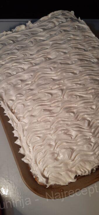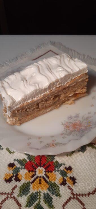 Ovaj recept je u mojoj zbirci skoro 40 godina, a uzet je od jedne bake što znači da je prilično star. Po originalnom receptu ide margarin mada sam ja stavljala maslac i odozgo ne ide šlag nego se muti šam od belanaca: ušpinuje se 500g šećera pa se kap po kap vrelo dodaje u umućena belanca uz mućenje najvećom brzinom. Torta je inače dosta slatka tako da sa strainskim šamom bude još slađa. Ja sam se ipak odlučila za šlag, a od belanaca sam spremila drugi kolač.
