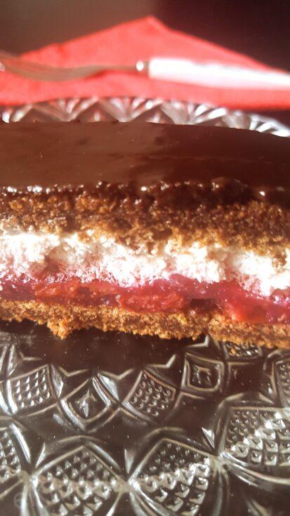 2. Pečenu koru ohladite pa je presecite po širini na 2 dela.