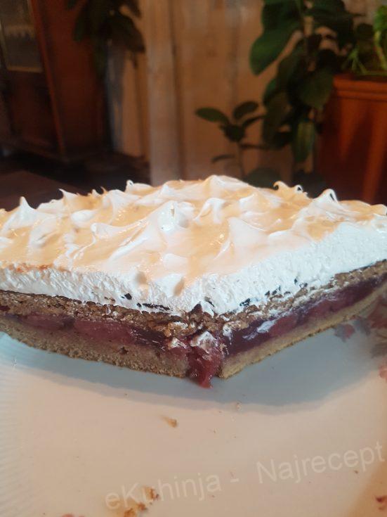 Izručite smesu u okugli kalup prekriven pek papirom i pecite koru na 180 st. oko 15 minuta. Pečenu koru izvadite iz rerne i kada se ohladi presecite je na pola.