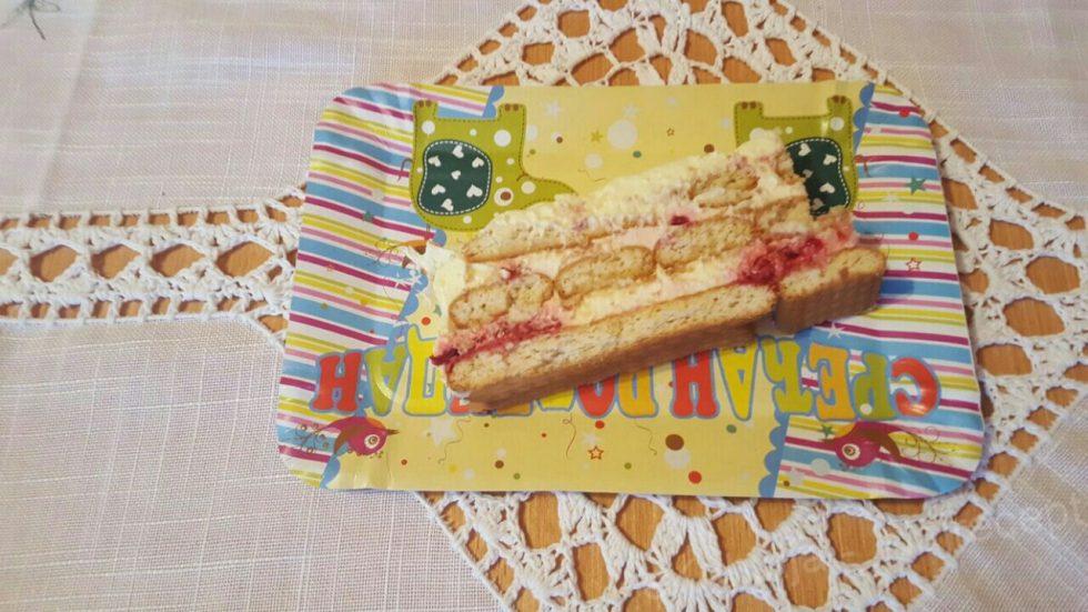 4. Preko keksa naneti fil,a preko fila rasporediti maline, pa tanak sloj fila.