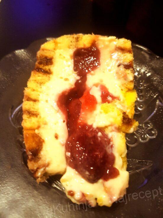 2. Pecite na 180 st oko desetak minuta, izvadite pleh i koru stavite na radni sto i odmah je urolajte zajedno sa pek papirom da stoji 3-4 min. a onda je odrolajte, premažite džemom i ponovo urolajte.