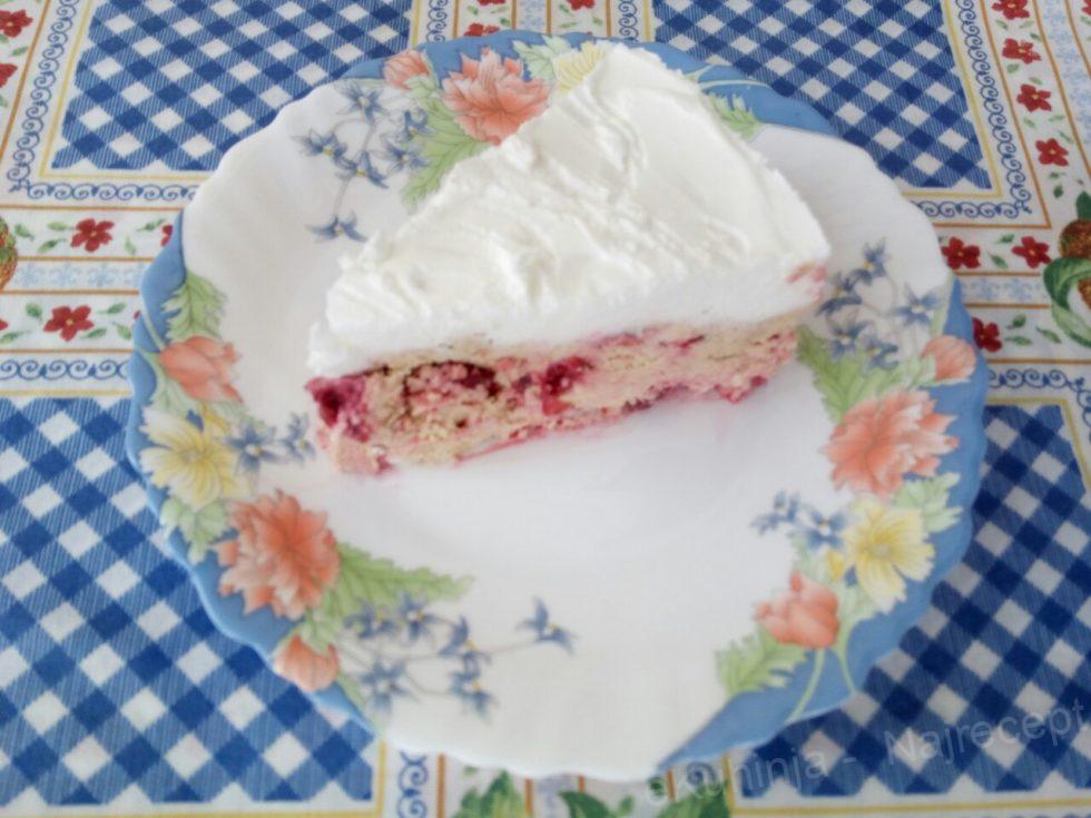 8. Tortu izvaditi iz zamrzivača, ukloniti obruč, seći na parčad željene veličine, servirati i poslužiti.