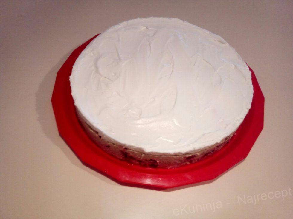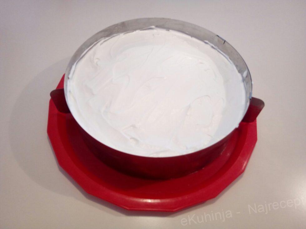 7. Preko naneti šlag i ostaviti u frižider da odstoji sat vremena (najbolje je da odstoji do sutradan).