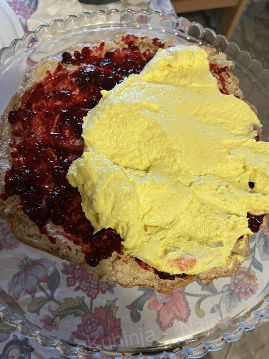 14. Šlag umutiti po uputstvu sa kesice, pa premazati tortu okolo i posuti mlevenom plazmom.